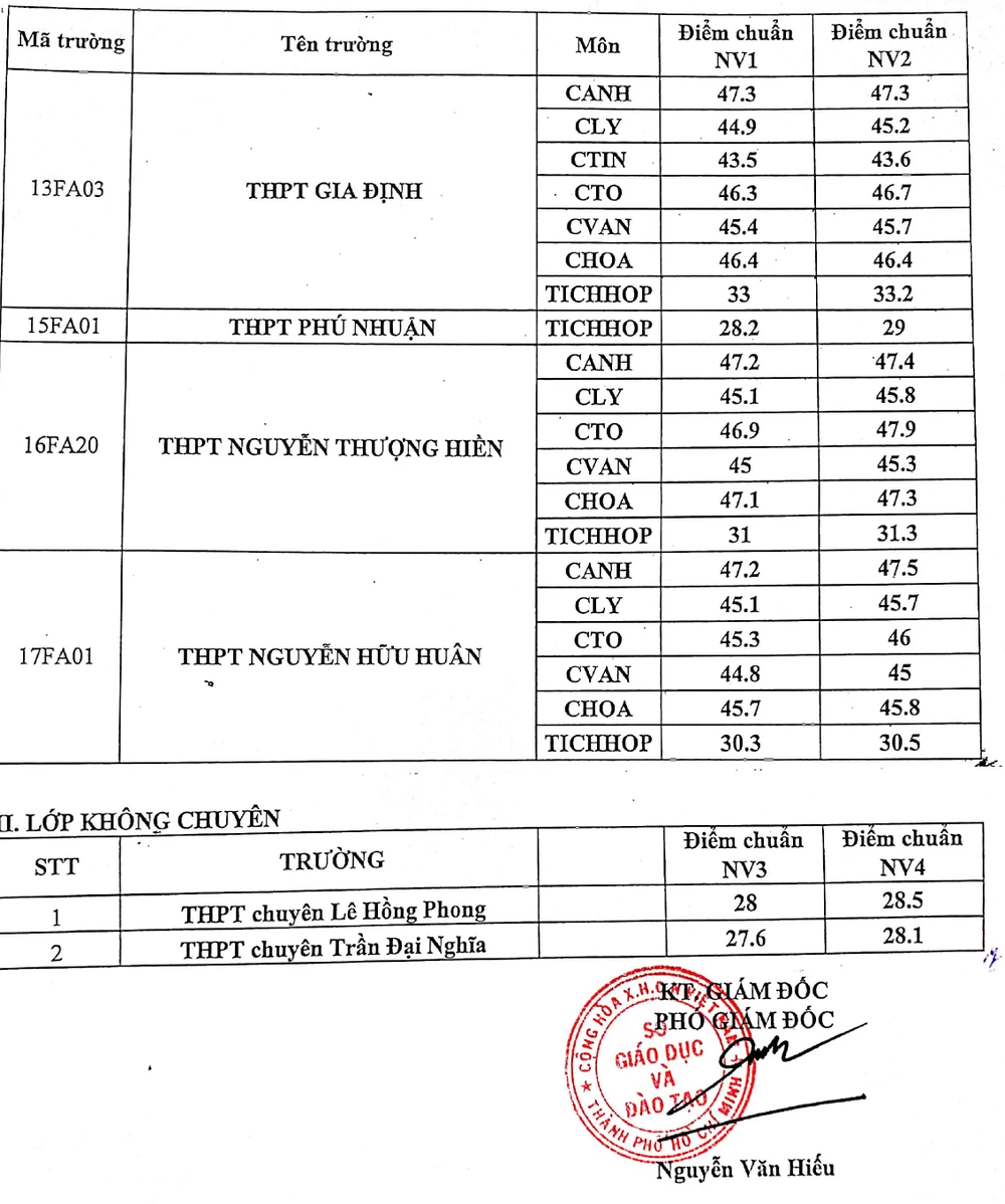 Các học sinh không trúng tuyển lớp 10 chuyên sẽ được xét tuyển lớp không chuyên trong trường chuyên căn cứ trên: Tổng ĐTNM CN lớp 9 của môn văn – toán – ngoại ngữ + điểm khuyến khích (nếu có).