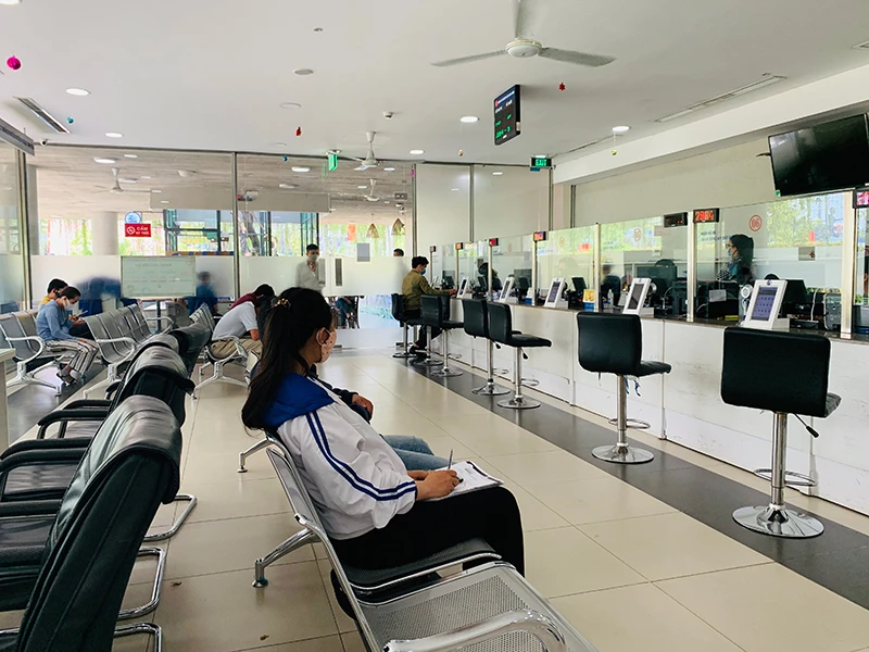 Bộ phận tiếp nhận và trả kết quả của UBND quận 12 vào trưa 1-4. Ảnh: VIỆT HOA
