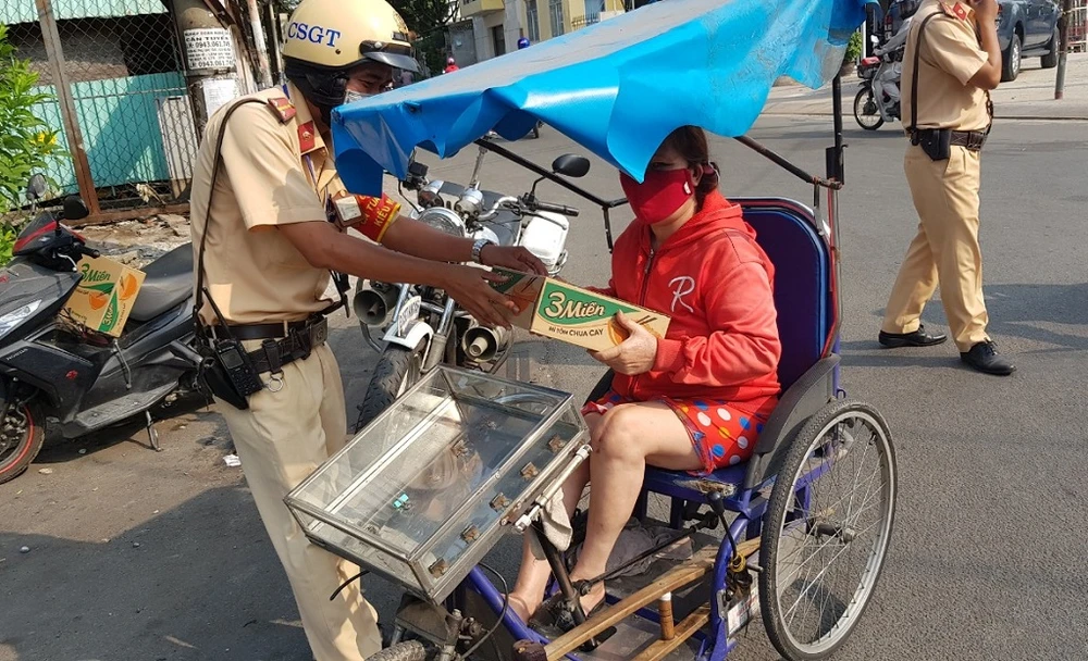 Ngày 2-4, Phòng PC08 Công an TP.HCM cho biết các CSGT, đoàn viên của các đội CSGT đã tự góp tiền mua lương thực, thực phẩm để trao tặng cho những người dân khó khăn.