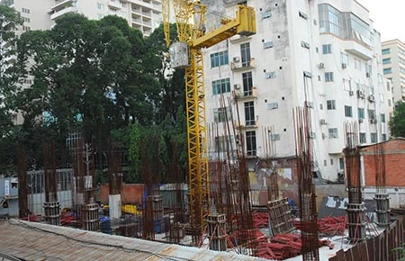 Công trình xây dựng khách sạn Mường Thanh Sài Gòn trên đường Mạc Đĩnh Chi, quận 1. (Ảnh chụp chiều 9-9) Ảnh: HTD