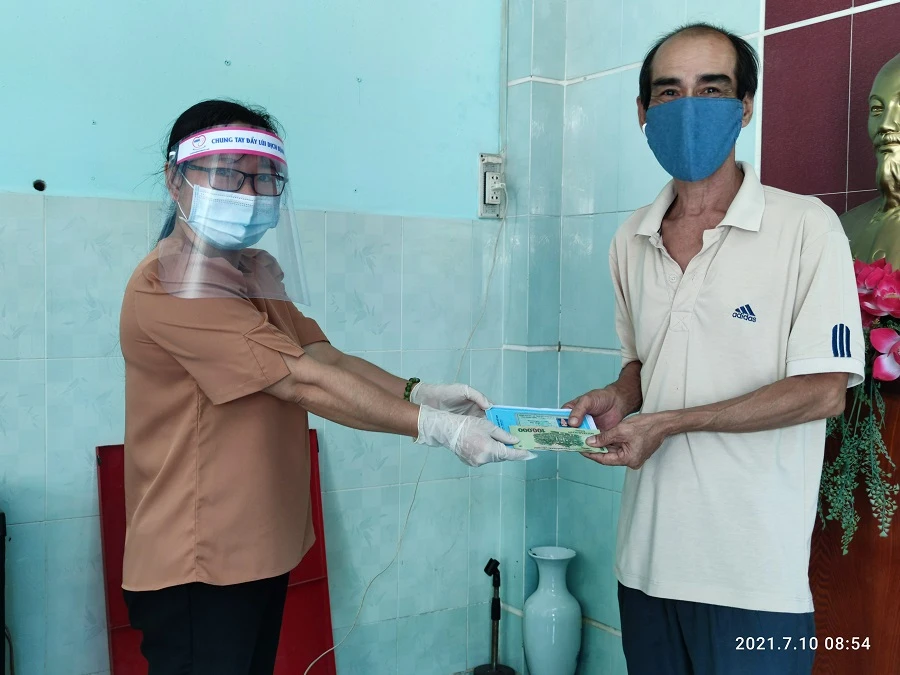 Cán bộ phường Thạnh Xuân chi hỗ trợ cho người lao động tự do. Ảnh : NGUYỄN HIỀN