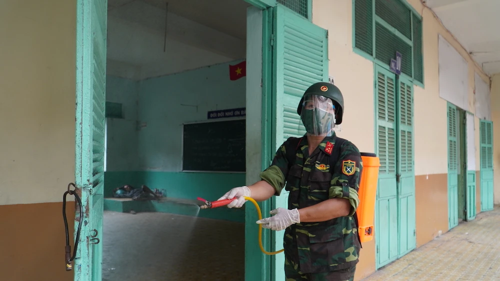 Khử khuẩn khu lưu trú tập trung trước khi đón người vô gia cư ở quận 4.