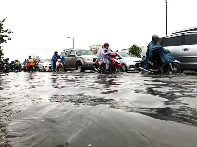 Đường Phạm Văn Đồng ngập sau mưa. Ảnh: Nguyễn Tân