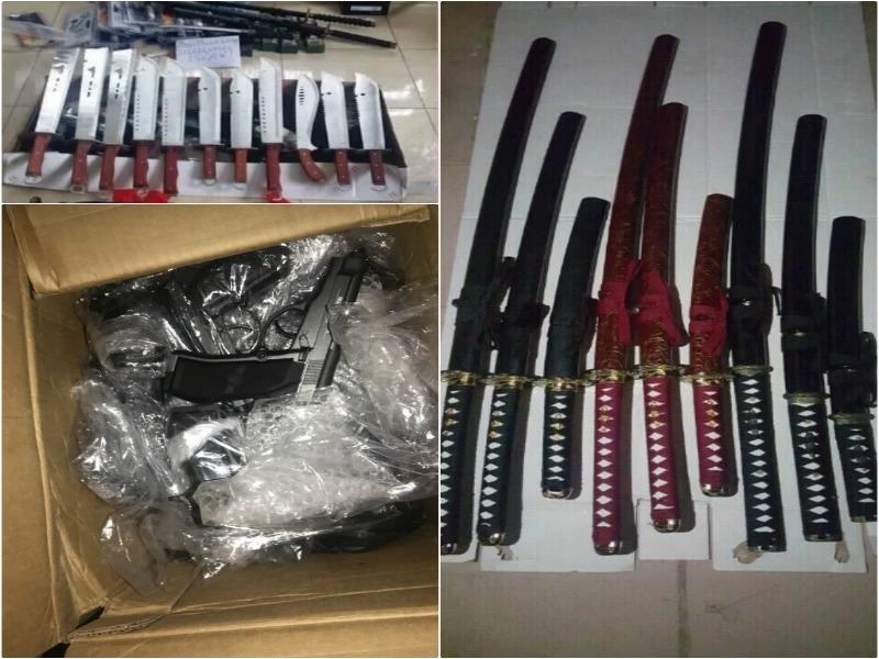 Tang vật thu giữ gồm 2.547 cây đao, kiếm, dao, lưỡi lê, mã tấu các loại, 93 súng bắn đạn bi, hơn 700 súng điện, roi điện và hàng trăm bình xịt hơi cay, đạn súng bắn điện…