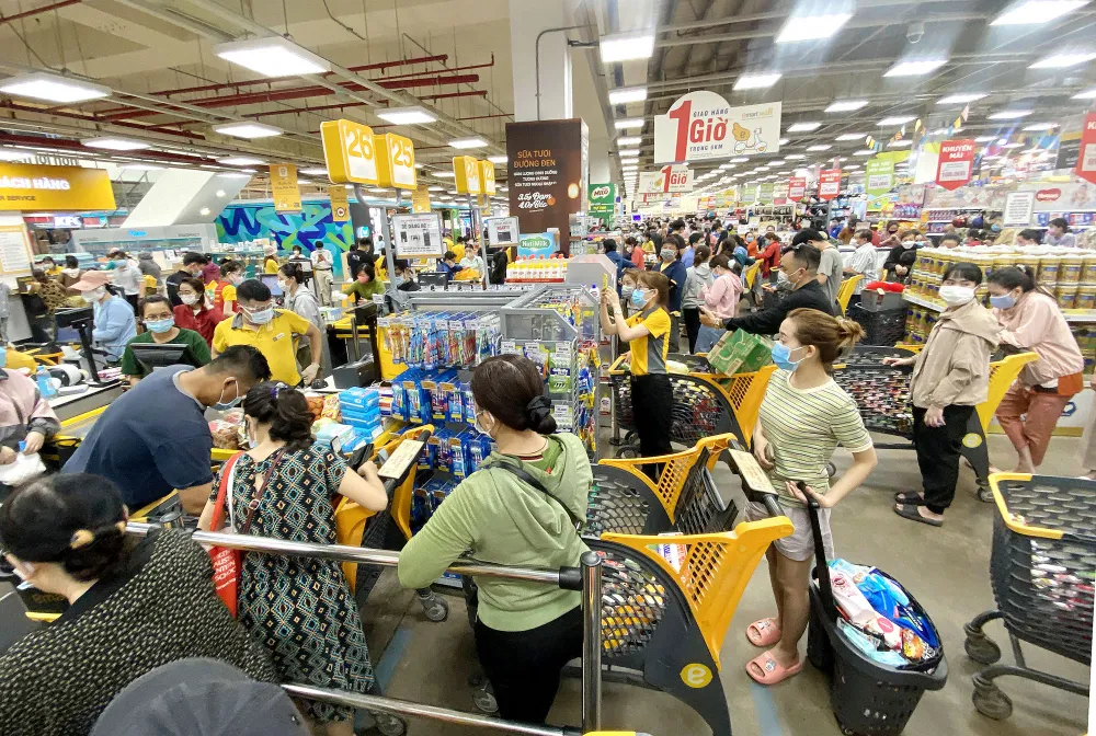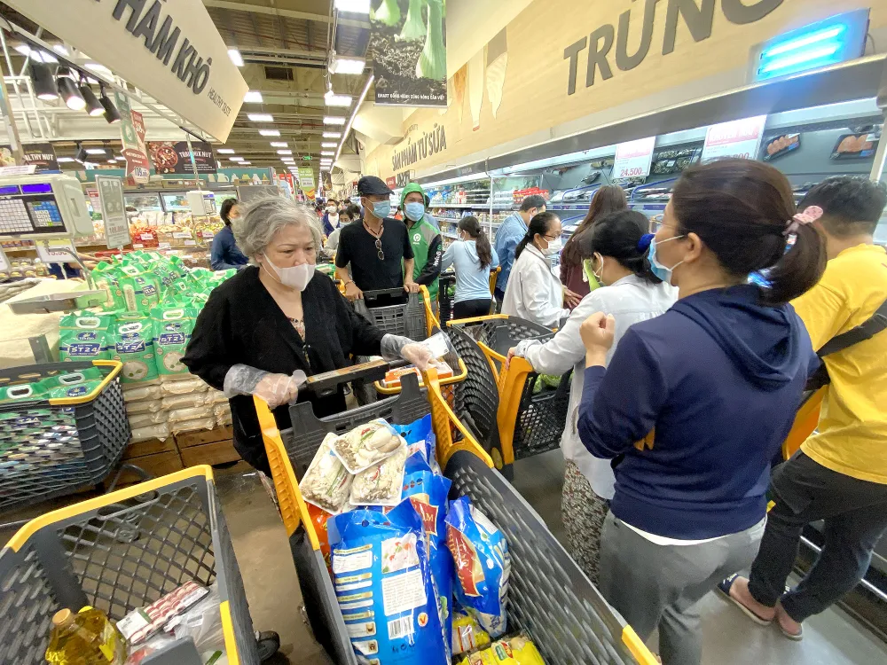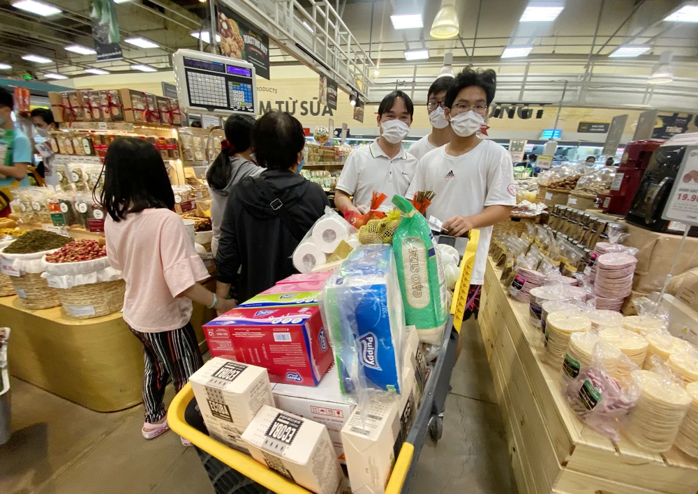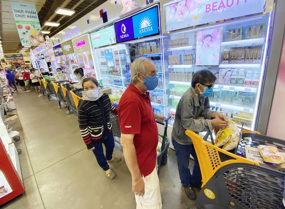 Tâm lý giãn cách xã hội khiến nhiều người tranh thủ đi mua hàng về dự trữ.