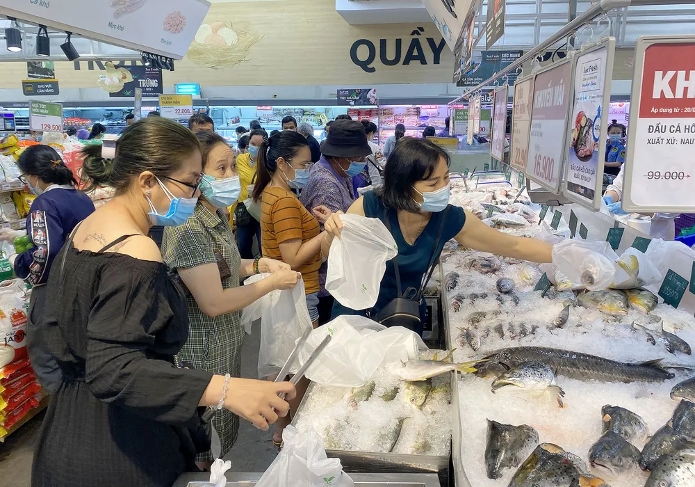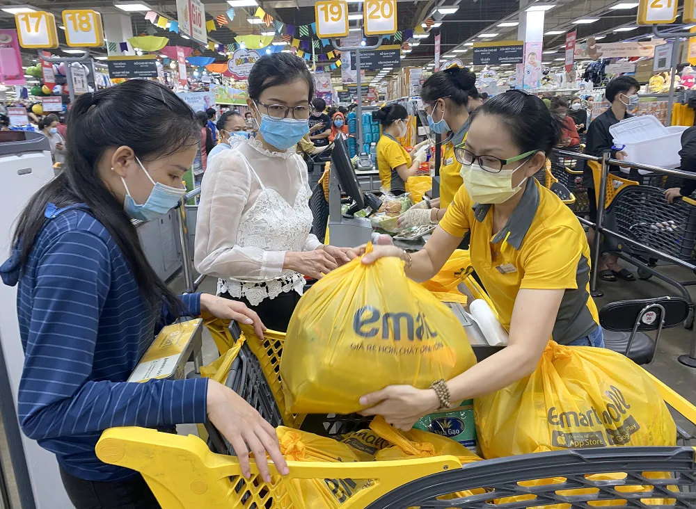 Trưa 30-5, ghi nhận tại siêu thị Emart (phường 5, quận Gò Vấp, TP.HCM), các khu vực mua sắm bên trong siêu thị đã có rất đông người đến lựa mua hàng.