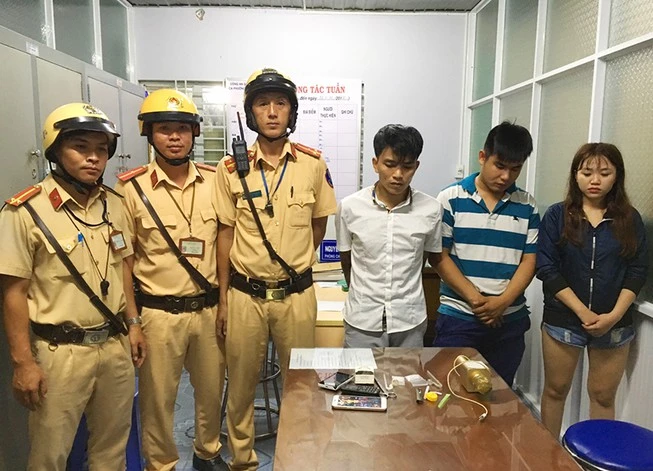 Đội CSGT quận 12 đã bắt được 3 người có giấu ma túy đá. Ảnh: H.QUÂN