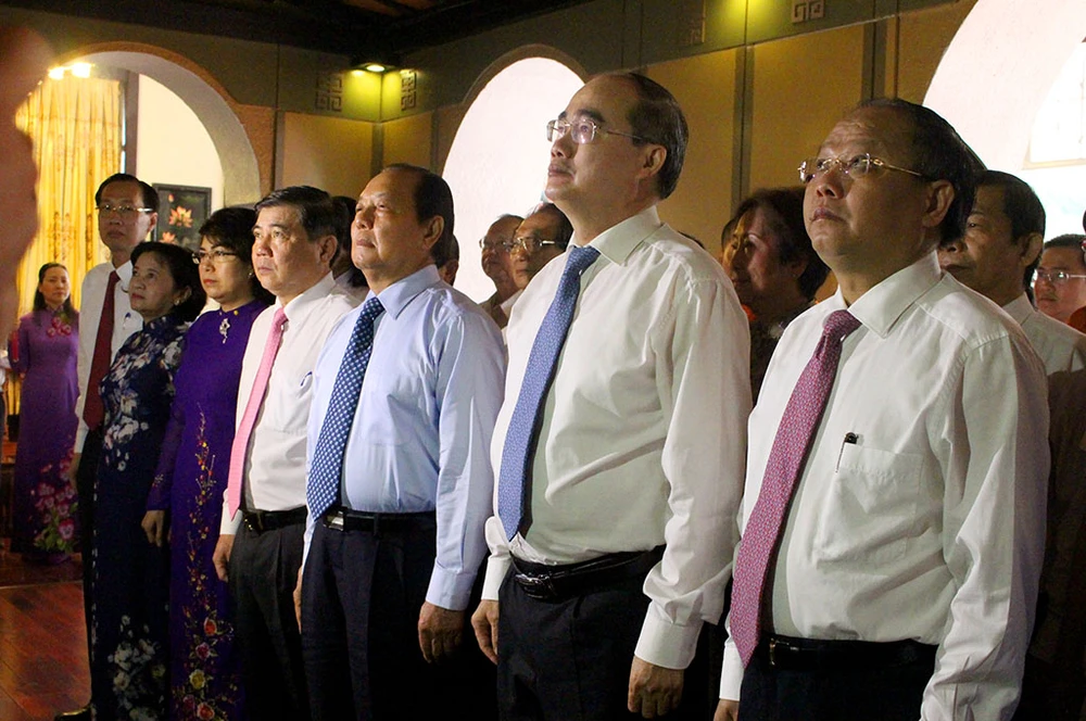 Đoàn lãnh đạo TP.HCM đã đến dâng hương, dâng hoa tưởng niệm Chủ tịch Tôn Đức Thắng. Ảnh: L.THOA