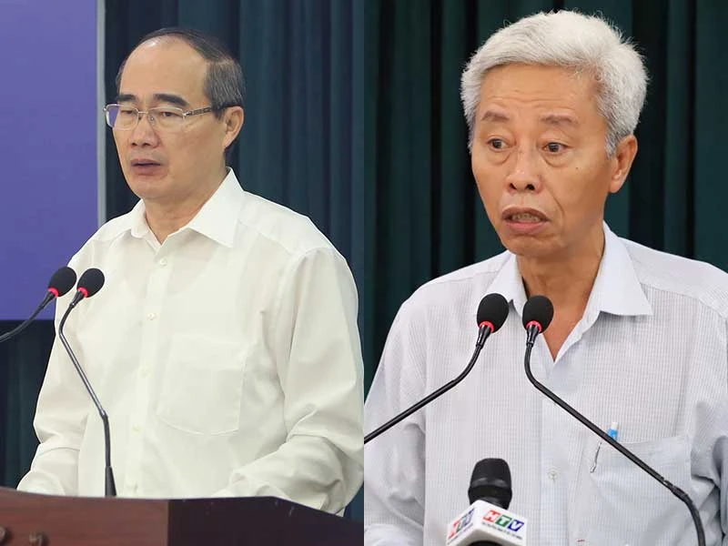 Bí thư Thành ủy TP.HCM Nguyễn Thiện Nhân và Thiếu tướng Phan Anh Minh phát biểu tại hội nghị. Ảnh: Lâm Tân