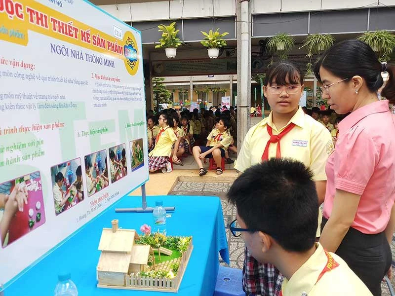 Học sinh Trường THCS Phan Tây Hồ, quận Gò Vấp, TP.HCM trong ngày hội STEM của trường. Ảnh: NGUYỄN QUYÊN