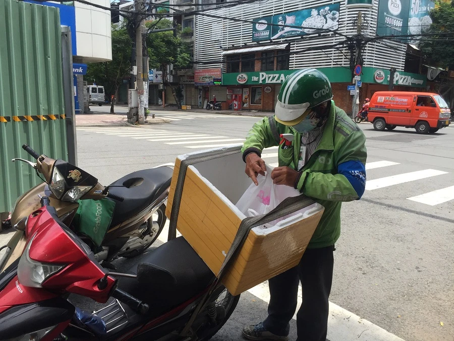 Người dân đặt hàng qua các ứng dụng và được giao tận nơi . ẢNH: TÚ UYÊN