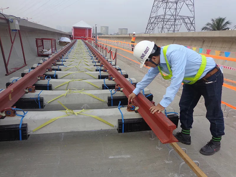 Kiểm tra kỹ thuật chuẩn bị lắp ray tuyến metro số 1 Bến Thành-Suối Tiên. Ảnh: LƯU ĐỨC