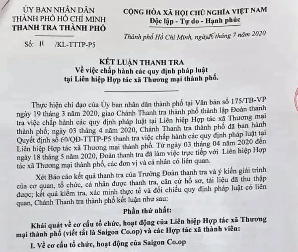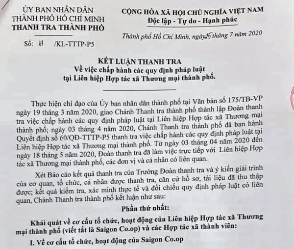 Tháng 7-2020, Thanh tra TP.HCM công bố quyết định thanh tra liên quan đến Saigon Co.op.