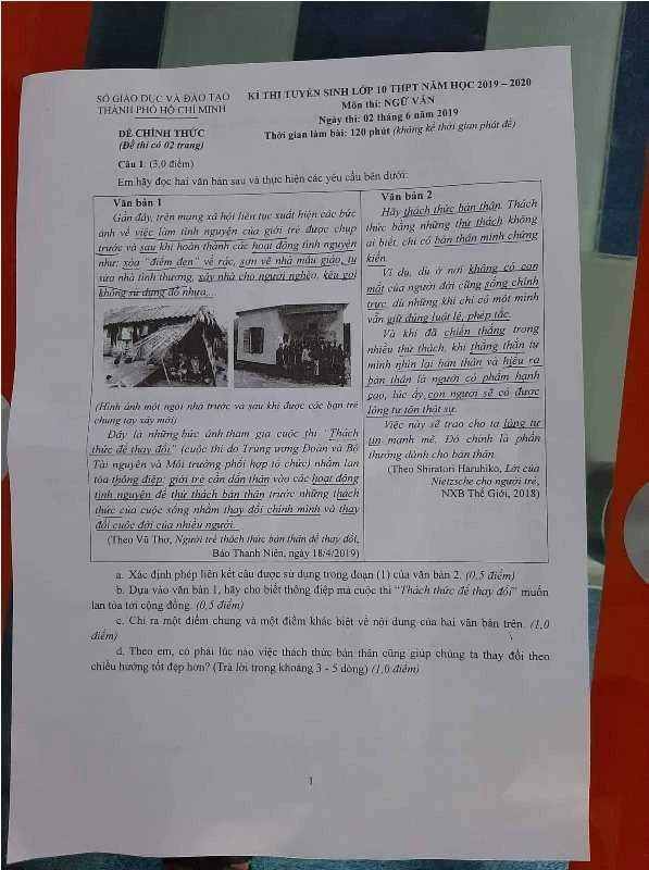Đề thi Văn tuyển sinh 10 tại TP.HCM.