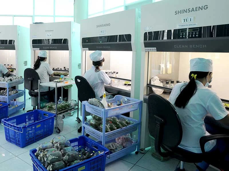 Các nhà khoa học làm việc trong phòng cấy mô khu nông nghiệp công nghệ cao TP.HCM. Ảnh: HTD