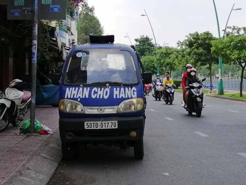 Xe chở hàng bốn bánh có gắn động cơ đậu trên đường Hoàng Sa (quận Tân Bình). Ảnh: THU TRINH
