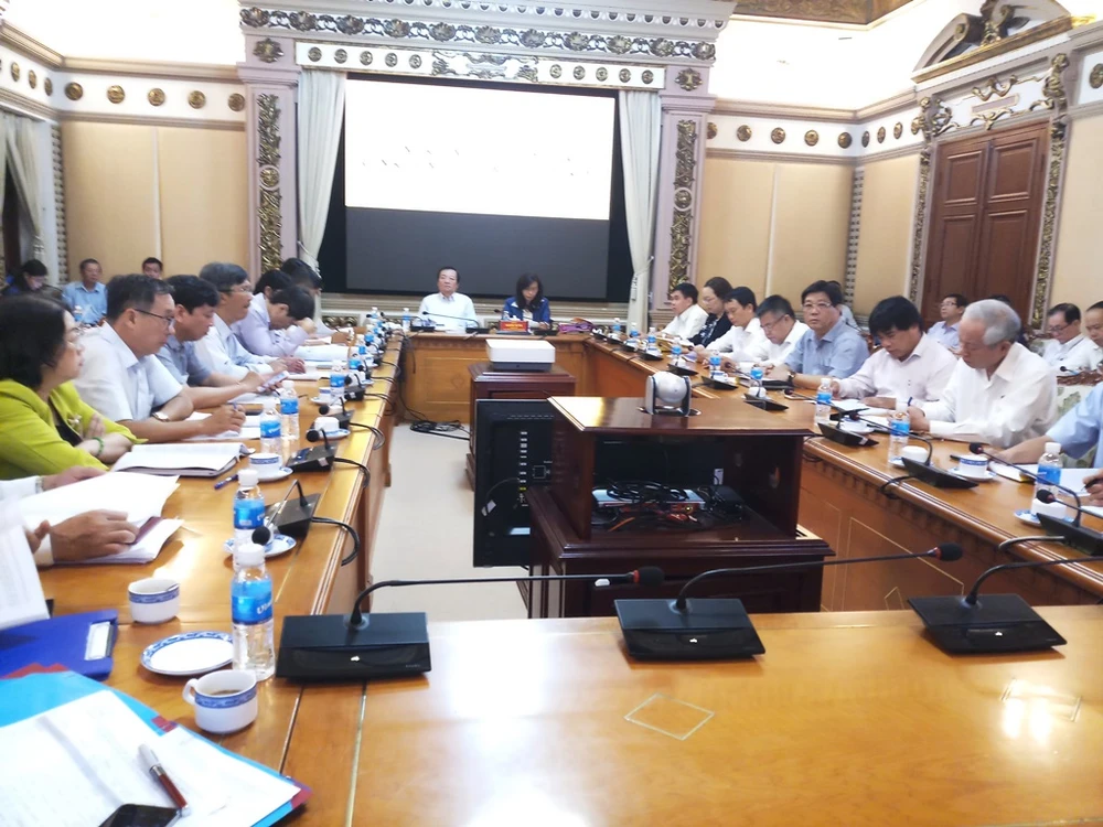 Các đại biểu tham dự hội nghị trực tuyến tại UBND TP.HCM.