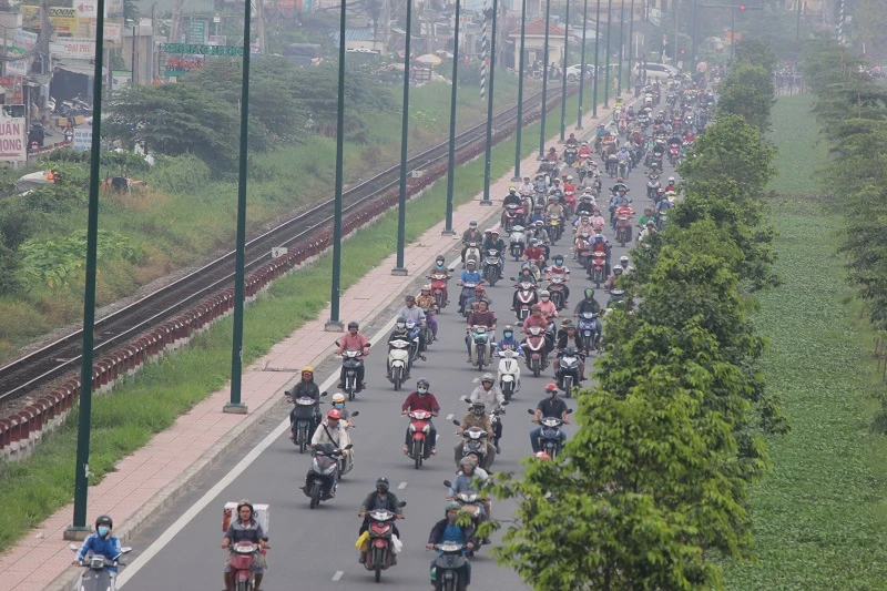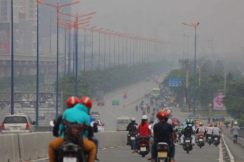 Sương mù vẫn còn trên đường xa lộ Hà Nội (quận 2) vào buổi chiều.
