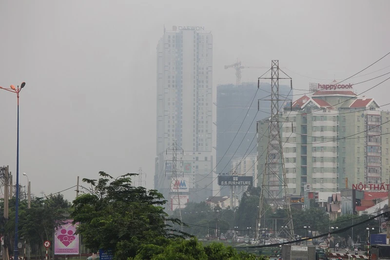 Tòa nhà Daewon (quận 2) mờ trong sương mù.