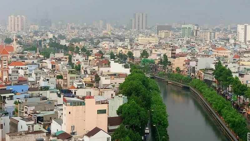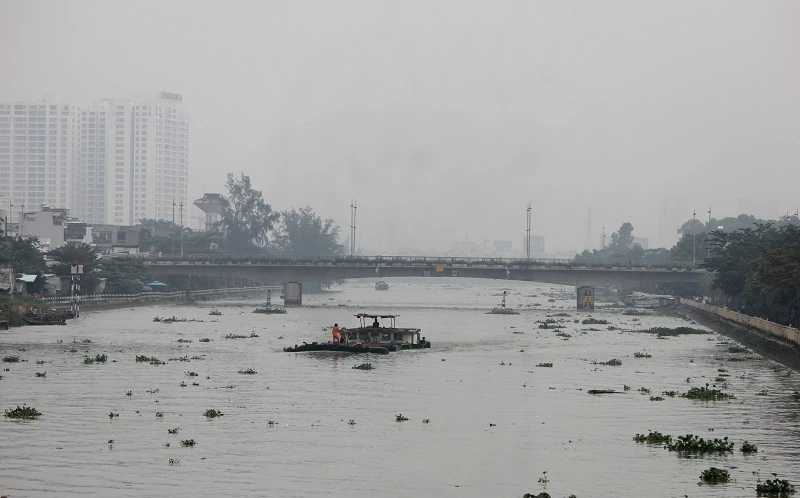 Sương mù dọc bờ kênh Nhiêu Lộc về trung tâm TP bắt đầu tan.