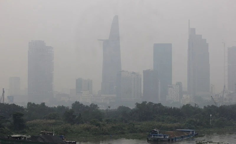 Sương mù xuất hiện bao phủ nhiều tuyến đường, nhà cao tầng ở Sài Gòn từ sáng sớm đến chiều.