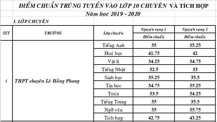 Tại trường THPT chuyên Lê Hồng Phong, NV1 chuyên Tin năm ngoái có điểm chuẩn 41,75 nay giảm xuống còn 34,75.