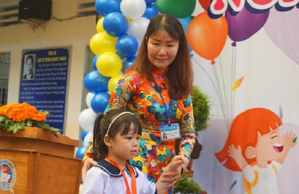 Cô trò Trường Trần Quốc Thảo, quận 3 trong lễ tựu trường năm học 2019-2020. Ảnh: NGUYỄN QUYÊN