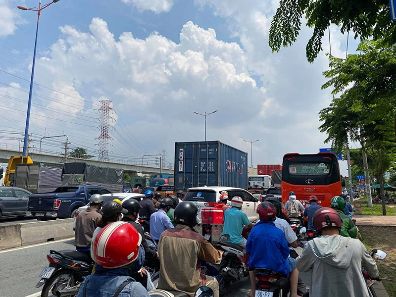 Vào giờ cao điểm, dọc xa lộ Hà Nội, ngã tư Bình Thái, ngã tư MK, đường số 1 và số 2 luôn có rất nhiều xe tải, xe container lưu thông, gây kẹt cứng.