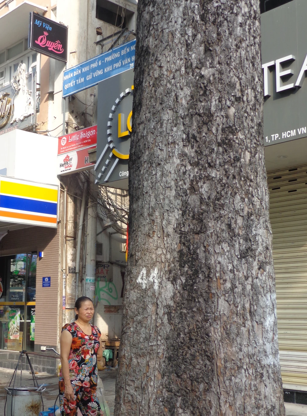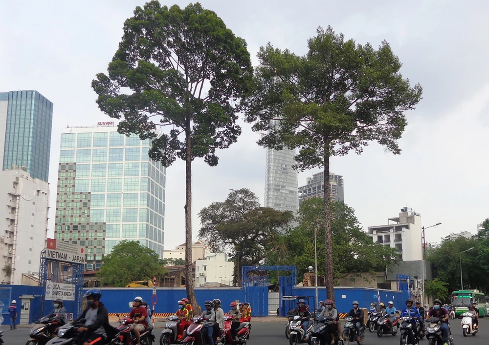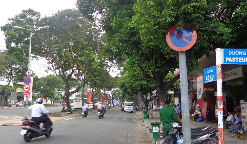 Hai cây dầu số 35 và 37 ở góc đường Lê Lợi - Pasteur, theo hướng đi về Nhà hát TP còn được chừa lại sau nhiều lần đốn hạ, di dời cây xanh ở tuyến đường Lê Lợi.