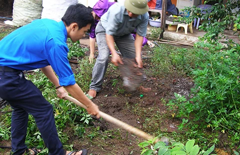 Đoàn viên thanh niên khu phố 5, phường Đông Hưng Thuận, quận 12 (TP.HCM) phát quang bụi rậm ngăn ngừa SXH sáng 20-9. Ảnh: TRẦN NGỌC