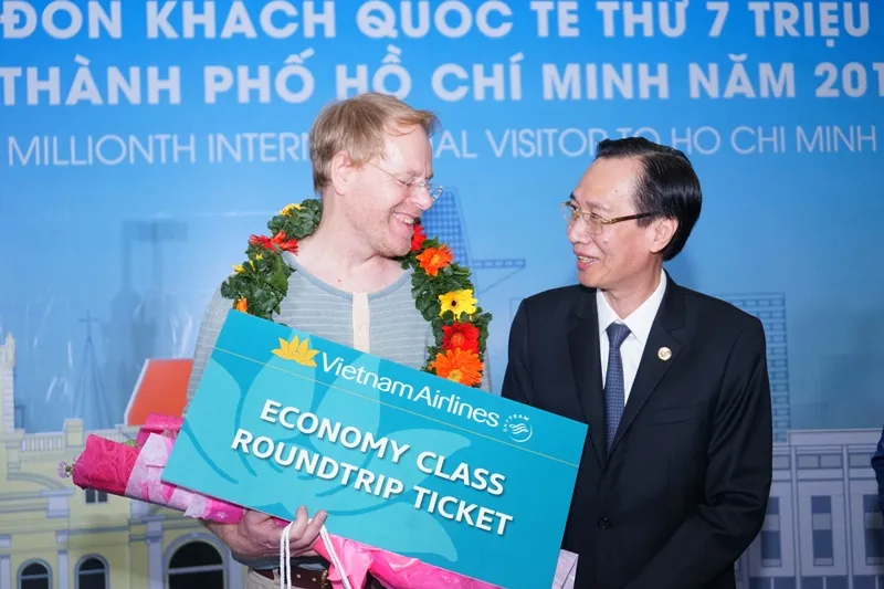 Trong lễ đón khách quốc tế thứ 7 triệu, Sở Du lịch dành tặng mỗi vị khách đặc biệt một phần quà bao gồm: Vé vận chuyển đến các điểm tham quan du lịch trên địa bàn TP, gói trải nghiệm các dịch vụ chăm sóc sức khỏe và bộ tranh sơn mài lưu niệm. Hãng hàng không quốc gia Việt Nam cũng dành tặng vị khách thứ 7 triệu một vé máy bay miễn cước hạng thương gia và hai vị khách liền kề mỗi khách một vé máy bay miễn cước hạng phổ thông.