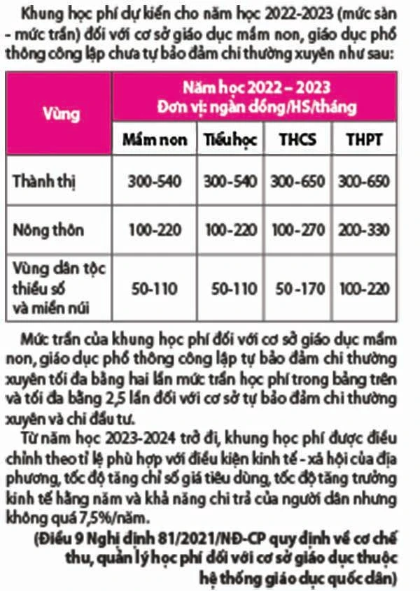 Vì vậy, theo vị này, song song việc tăng học phí, các cơ quan quản lý cần bàn thêm các phương án hỗ trợ HS ở các địa bàn đặc thù để có lộ trình phù hợp, nhất là bậc THCS.