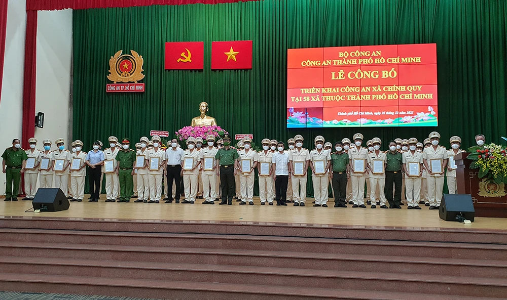 Ban giám đốc Công an TP.HCM cũng công bố Quyết định của Bộ trưởng Bộ Công an về việc tổ chức công an xã chính quy tại 58 xã thuộc các huyện Cần Giờ, Bình Chánh, Nhà Bè, Hóc Môn, Củ Chi (TP.HCM).
