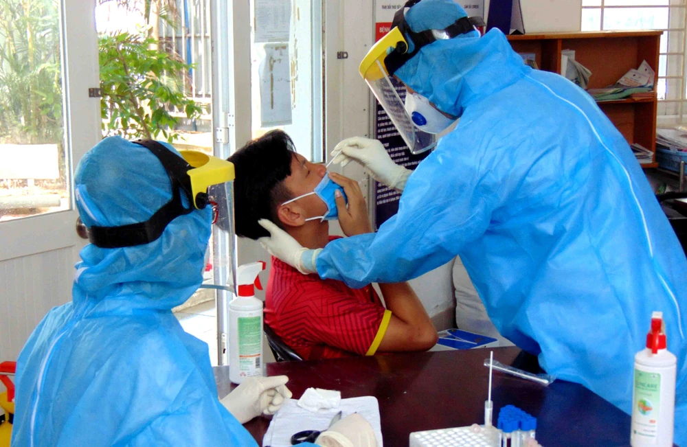 Trung tâm Y tế Hóc Môn (TP.HCM) lấy mẫu xét nghiệp người rời từ Đà Nẵng. Ảnh: TRẦN NGỌC