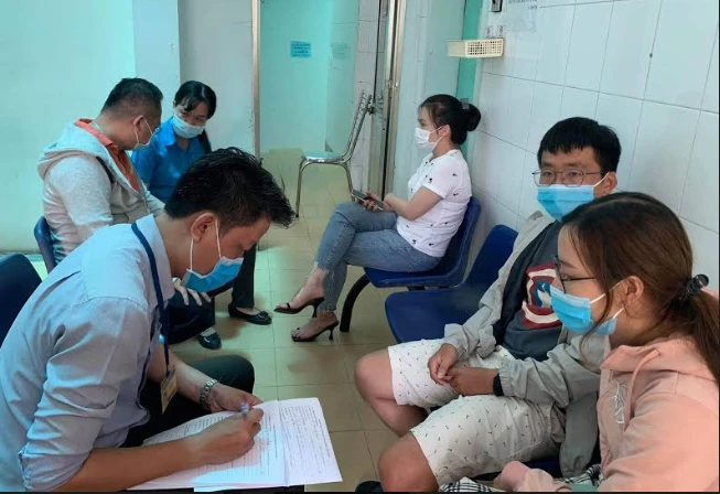 Những người về từ Đà Nẵng đang khai báo y tế tại Trung tâm Y tế quận 3, TP.HCM. Ảnh: HOÀNG LAN