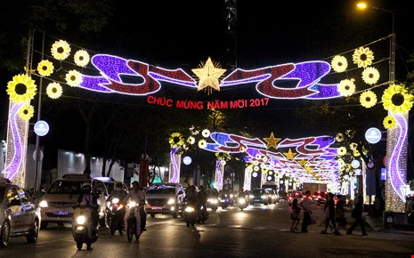 Trang trí ánh sáng trên đường Lê Duẫn, Tết Đinh Dậu 2017. Ảnh: LÊ THOA