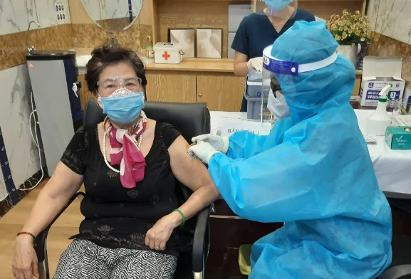 Nhân viên y tế đang tiêm vaccine ngừa COVID-19 cho người lớn tuổi. Ảnh: TRẦN NGỌC