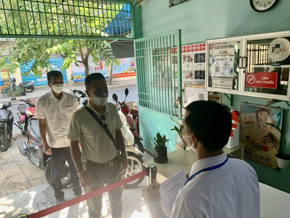 Người dân chờ cấp giấy hoàn thành cách ly tại trạm y tế phường 11 quận 5. Ảnh: HL