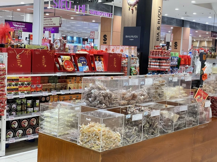 Đối với các hệ thống siêu thị, trung tâm thương mại, cửa hàng tiện lợi cũng xây dựng kế hoạch chuẩn bị nguồn hàng hóa phục vụ Tết tăng từ hai, ba lần so với tháng thường.