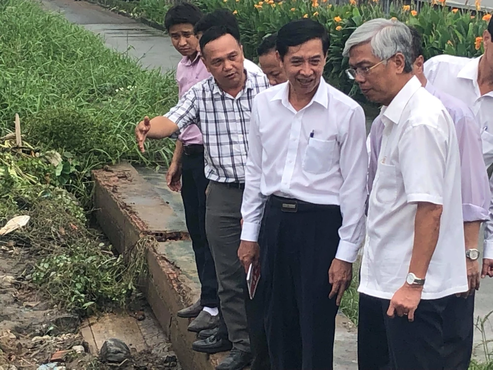Ông Võ Văn Hoan, Phó Chủ tịch UBND TP.HCM, đến hiện trường vỡ bờ bao quận 8. Ảnh: TS