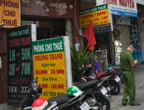 Cơ quan chức năng giám sát phòng cho thuê Phương Thanh bị phong tỏa do liên quan BN2910. Ảnh: TRẦN NGỌC
