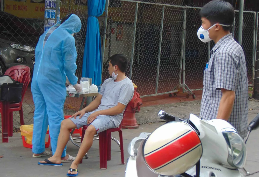 Nhân viên y tế quận 12, TP.HCM lấy mẫu giám sát COVID-19 trong khu vực phong tỏa. Ảnh: TRẦN NGỌC