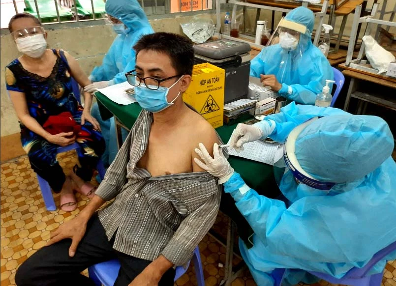 Cơ quan y tế tiêm vaccine ngừa COVID-19 cho dân trên địa bàn quận 12, TP.HCM. Ảnh: TRẦN NGỌC