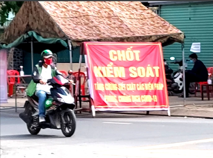 Chốt kiểm soát dịch bệnh trên địa bàn huyện Hóc Môn, TP.HCM để chống dịch COVID-19. Ảnh: TRẦN NGỌC