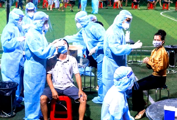Cơ quan y tế lấy mẫu xét nghiệm dân trên địa bàn phường An Lạc, quận Bình Tân. Ảnh: NGUYỆT NHI