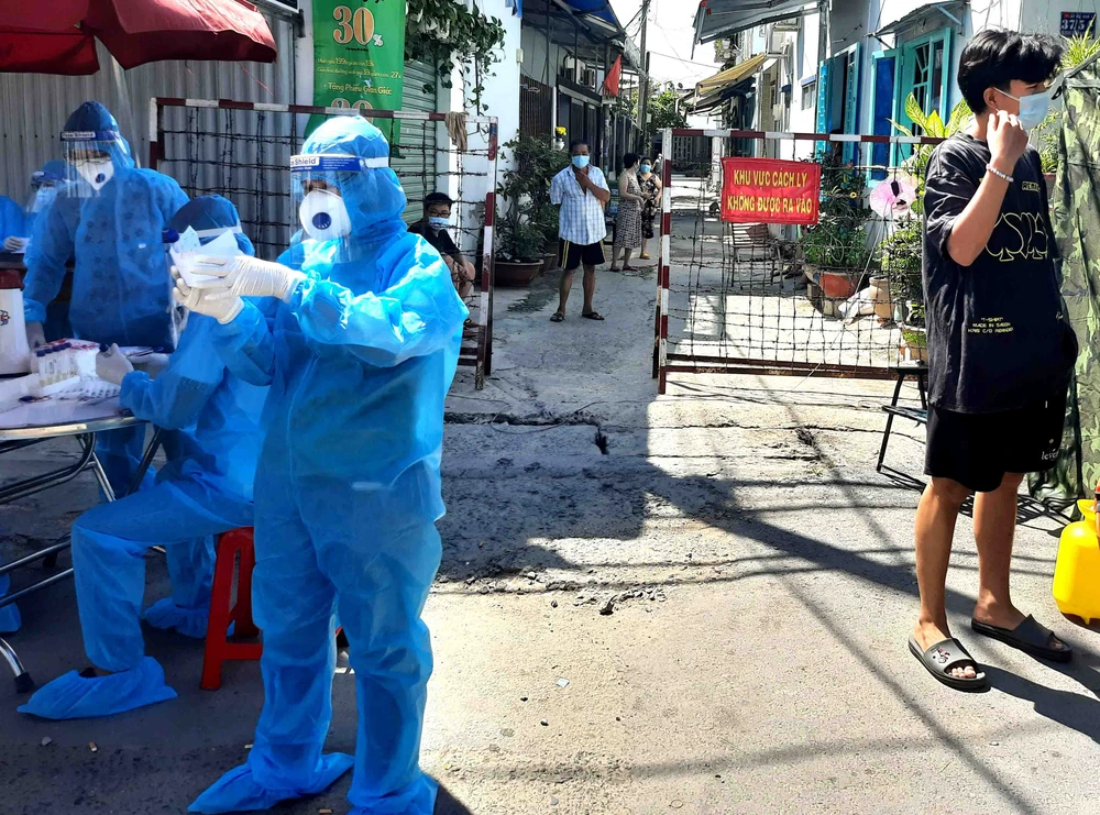 Phong tỏa 1 điểm trên địa bàn huyện Hóc Môn do có ca bệnh COVID-19. Ảnh:TRẦN NGỌC