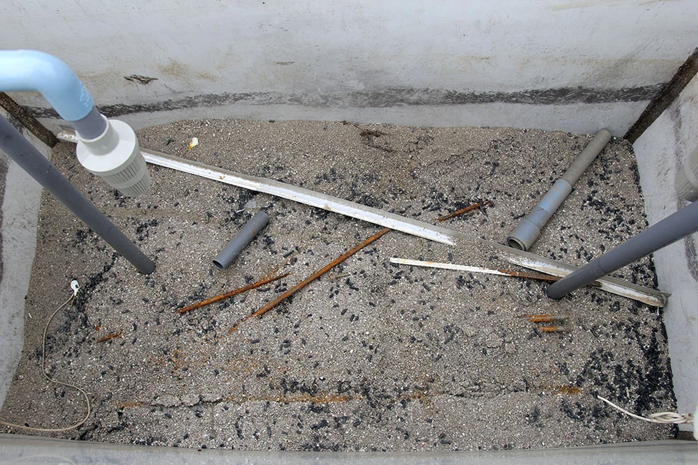 Đáy bể lọc chứa cát và các vật liệu có khả năng hấp thu các chất hữu cơ gây ô nhiễm nguồn nước.