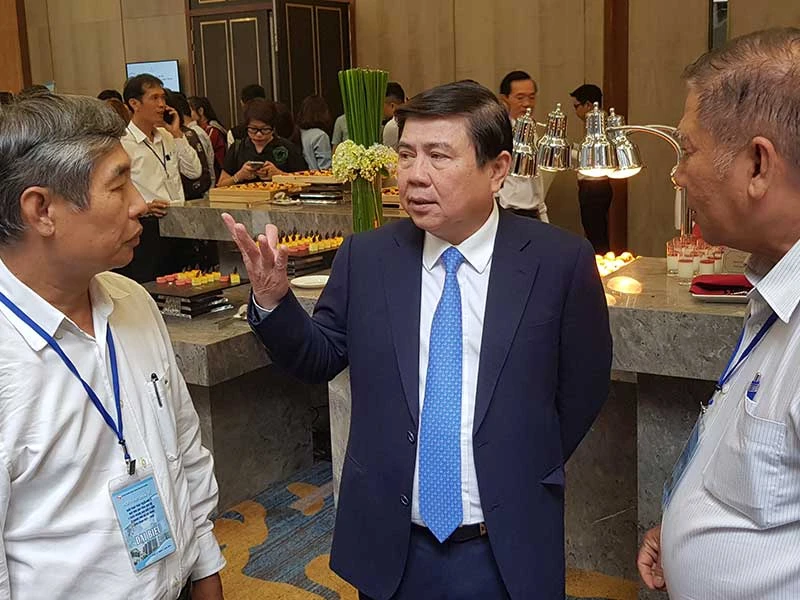 Chủ tịch UBND TP.HCM Nguyễn Thành Phong (giữa) tại hội thảo. Ảnh: KIÊN CƯỜNG