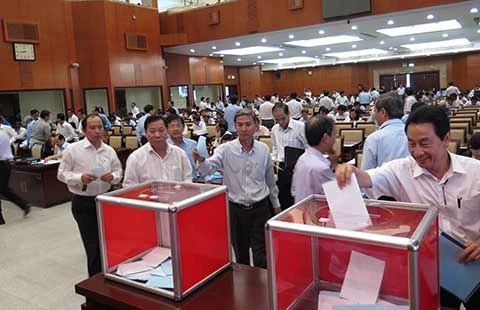 Bỏ phiếu giới thiệu nhân sự của TP.HCM vào Ban Chấp hành Trung ương Đảng khóa XII. Ảnh: BÌNH MINH