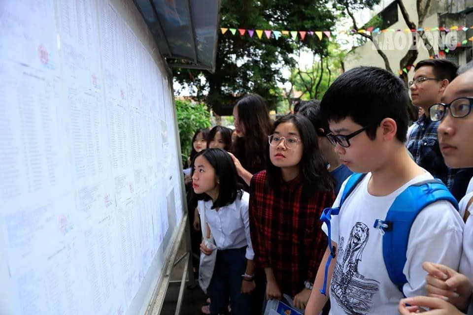 Thí sinh xem lại danh sách trước khi vào phòng thi tại điểm trường THPT Việt Đức (Hà Nội). Ảnh: HÀ PHƯỢNG